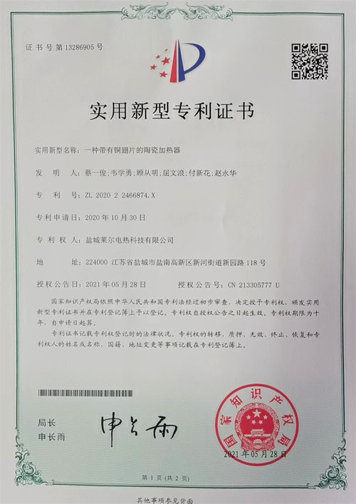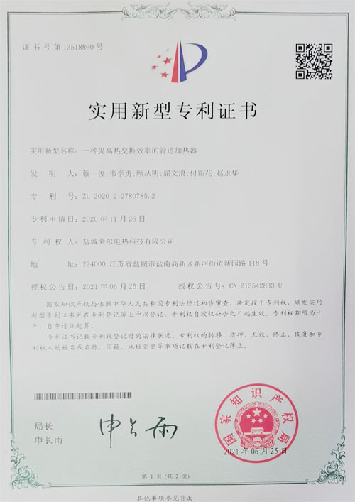 資質榮譽 當前位置: 鹽城萊爾電熱科技有限公司 >首頁 >資質榮譽